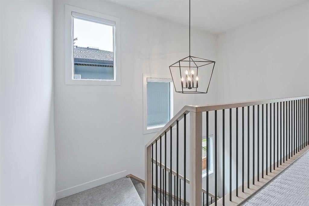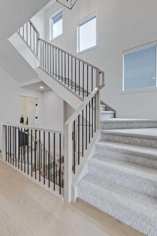 Ascend the open stairwell, bathed in natural light from multiple windows, and discover the serene upper level.