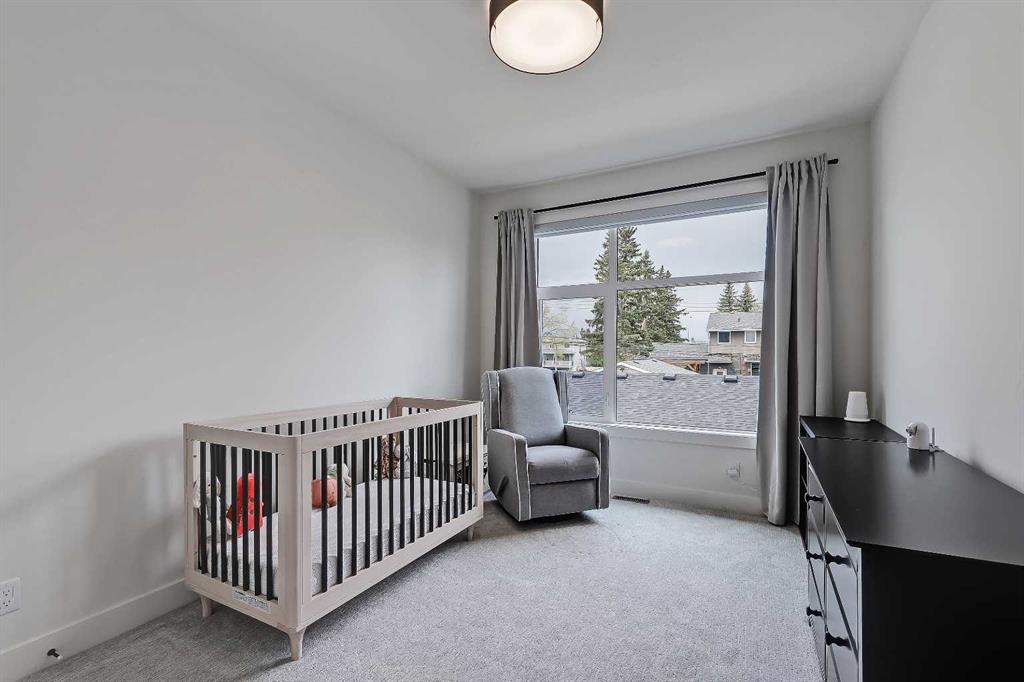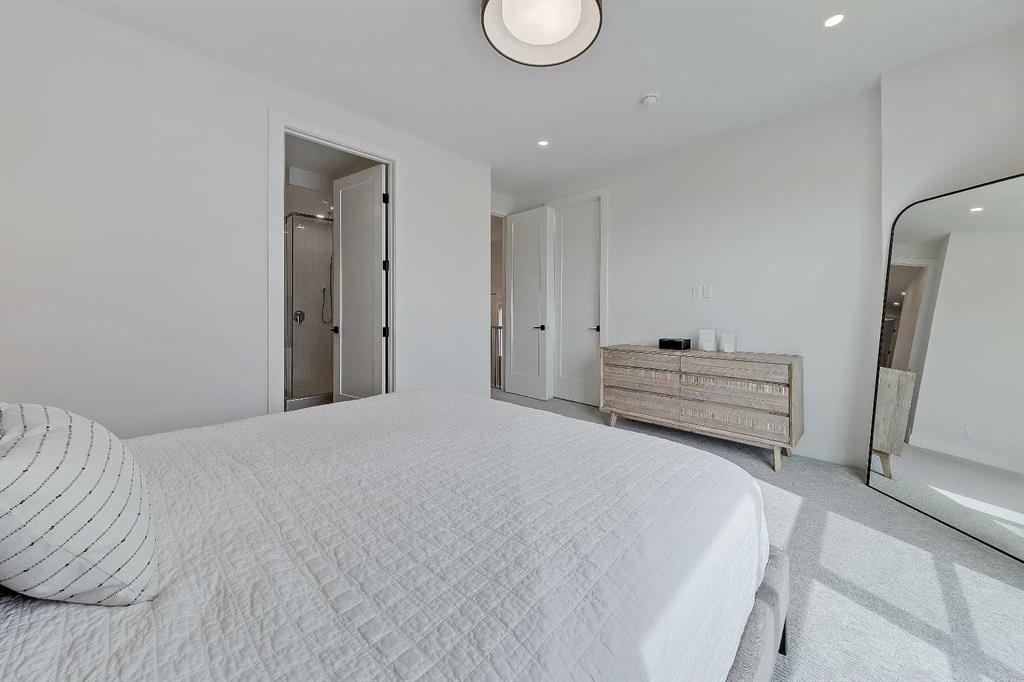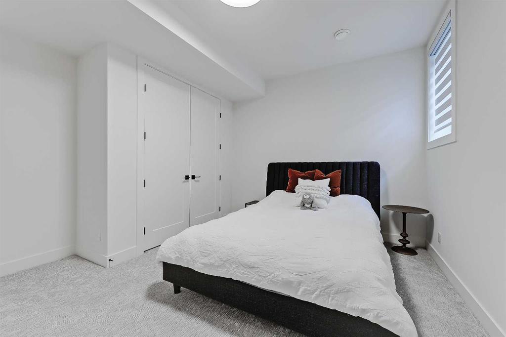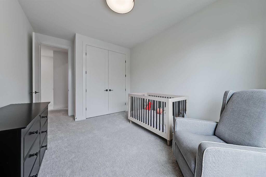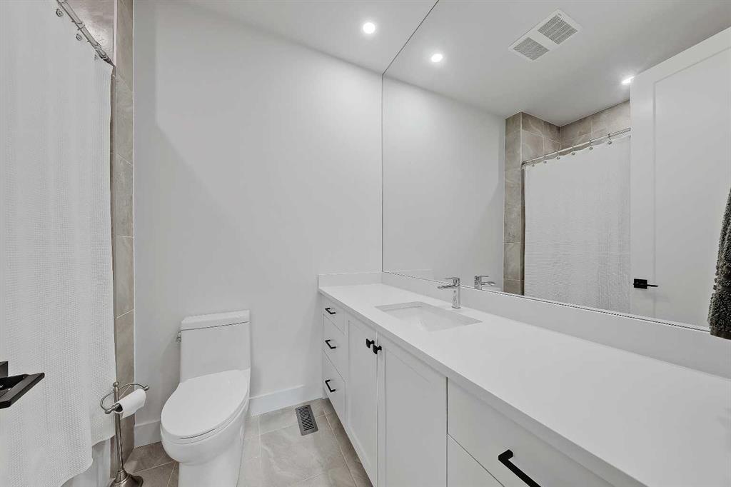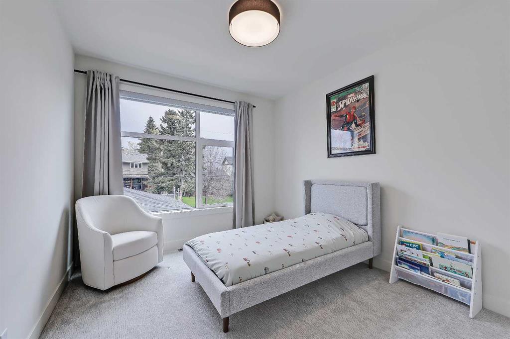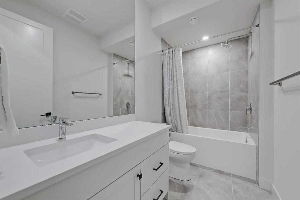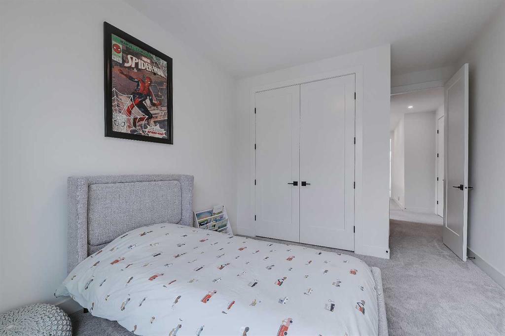 A fourth bedroom—ideal for guests or older children—offers its own walk-in closet, and a full 4-piece bathroom echoes the home’s high-end design with tiled floors, a quartz-topped vanity, and a tub/shower combo.