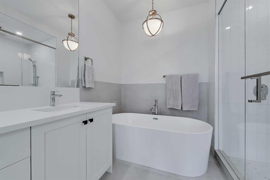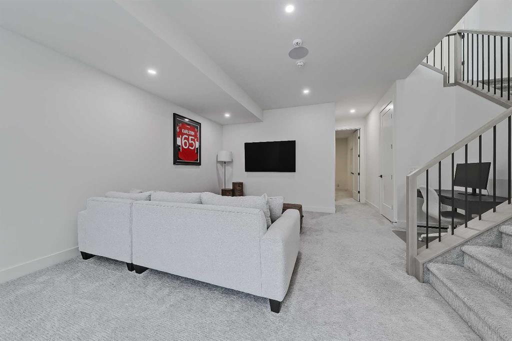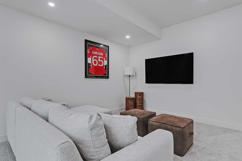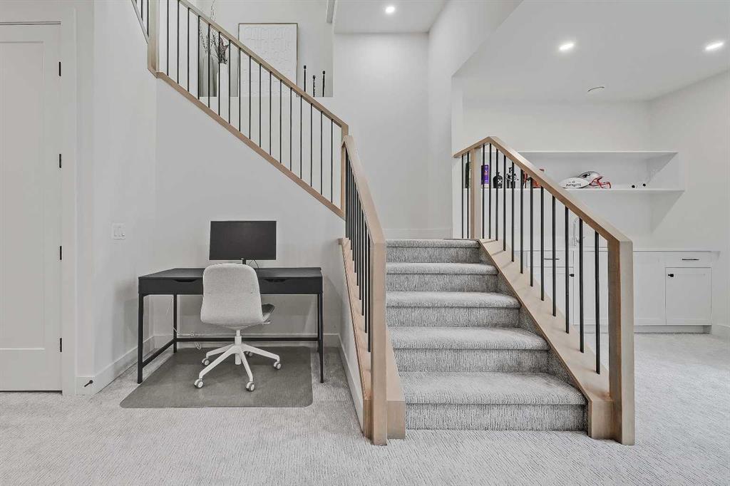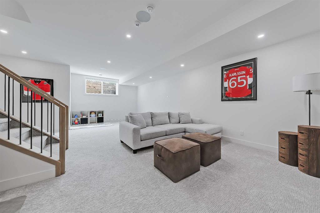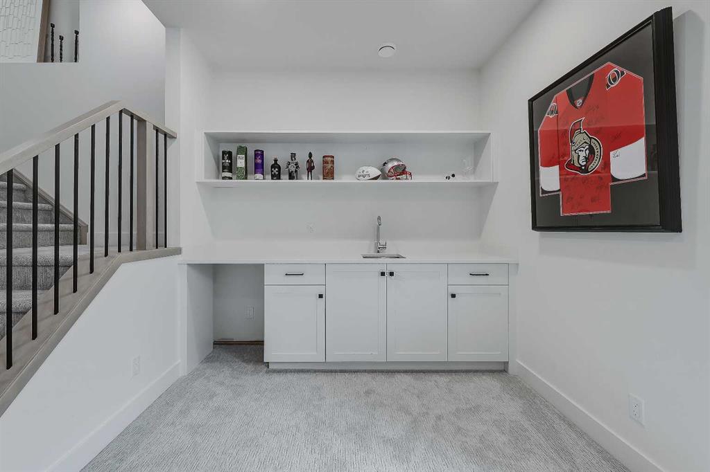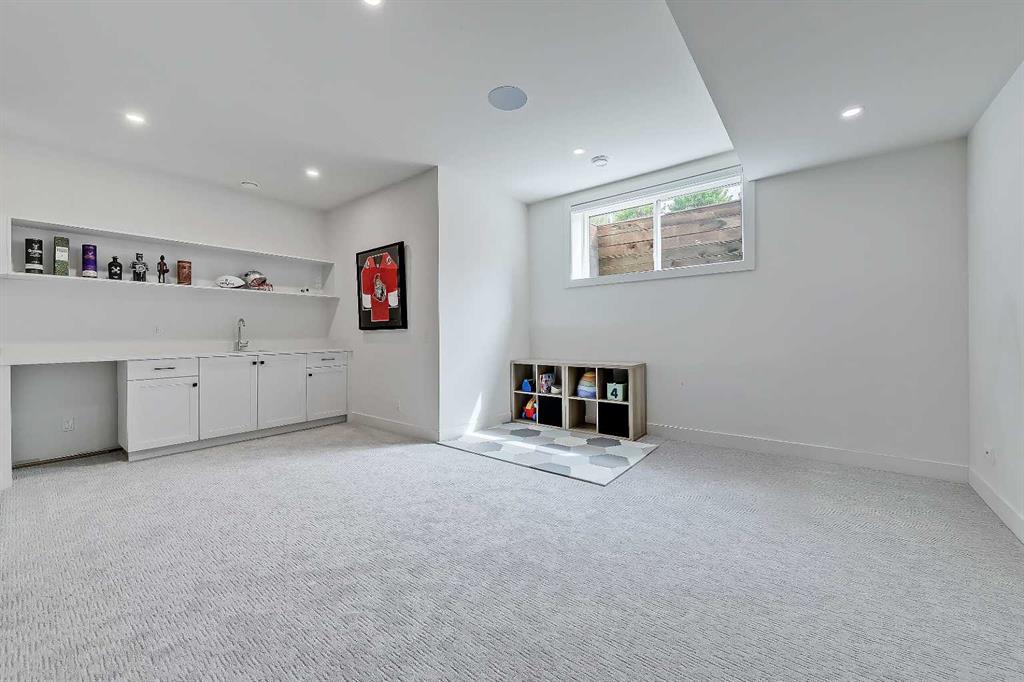 Below, the bright and airy basement unfolds as a versatile haven. A large rec room awaits home theatre nights, complete with a wet bar featuring quartz counters, open display shelving, and space for a beverage fridge. Additionally, there is still ample room for children’s play areas, a gym space, a reading nook – you name it!
