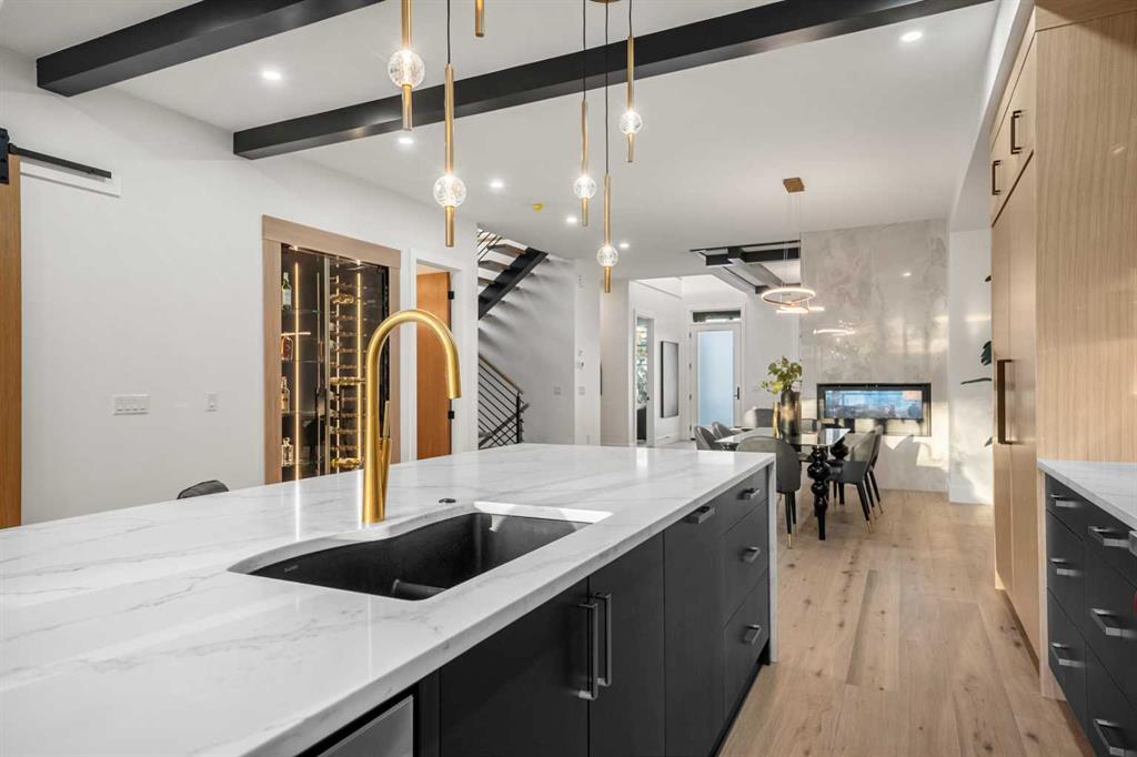 NEW PRICE! DISCOVER ELEVATED LIVING! Get ready to redefine your lifestyle with this breathtaking, brand new, two-story walk-up that offers uninterrupted, jaw-dropping views of Calgary's downtown skyline! Presented by premiere builder, Twin Real Estate Holdings, this property offers double the wow factor in the well-established SW community of Shaganappi. Imagine this...your west-facing backyard directly borders an 11 acre city park, complete with scenic pathways, tennis/basketball courts, skating/hockey rinks and an active community association that keeps the energy alive year-round. Step inside and prepare to be wowed by grand design, opulent finishes and thoughtful artistry throughout. From the soaring 10-foot vaulted ceilings to the natural light streaming through abundant walls of windows, every corner of this home exudes elegance and prestige. Picture cozy evenings in the spacious living room, anchored by a stunning double-sided gas fireplace, or hosting lavish dinners in the dining area, complete with a 48" built-in wine wall cooler for your prized private collection. The chef-inspired kitchen is a culinary dream come true, boasting only the best: a 60" SUB-ZERO refrigerator/freezer, a 48" WOLF 6-burner gas cooktop with dual wall ovens, a MIELE coffee system and a BOSCH dishwasher. The walk-in butler’s servery plus pantry ensures seamless entertaining and organization, while patio sliders open to your outdoor deck—a perfect spot to soak up summer sunsets while overlooking your landscaped yard. Need space for work or play? The main floor provides two versatile flex rooms, ideal for an executive home office, craft/hobby space or a children’s playroom—tailored to suit any lifestyle. The floating staircase—framed by an elegant wall of marble tile—takes you upstairs to even more grandeur. The bonus room offers spectacular skyline views, while two additional bedrooms each feature private ensuites and walk-in closets. The pièce de résistance is the owner’s retreat. The primary suite is a sanctuary of luxury, complete with a designer walk-in closet, a private west-facing balcony overlooking the park (sunsets and nightcaps, anyone?), and an unforgettable spa-like ensuite. This private bathroom features a double-sided gas fireplace, a freestanding black soaker tub, a separate glass steam shower, dual sinks and heated floors—a true oasis of relaxation. The lower level is designed for casual entertaining and comfort, offering a rec/media/games room and wet bar, a fourth bedroom, a den/flex/5th bedroom and a 4 piece bath. Access the attached heated double garage via the mudroom, or store your larger toys in the rear detached heated single garage, spacious enough for a pickup truck. This home is perfectly positioned to enjoy the best of Calgary—steps from the trendiest restaurants, boutique shops and social hubs of 17 Avenue, with only a 5 minute commute to downtown. Don’t miss your chance to make this incredible luxury home yours!